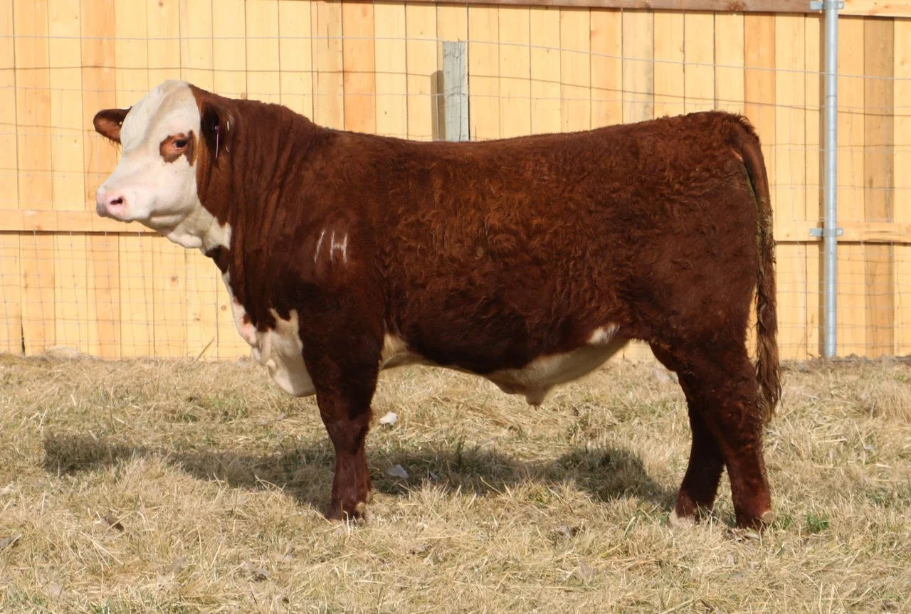 A shaplely, dark red bull who always catches my eye. Big, good feet under him and balances well from the side. The result of some embryos we purchased from our good friend Ron Shurtz. Top 15% calving ease and birth weight.